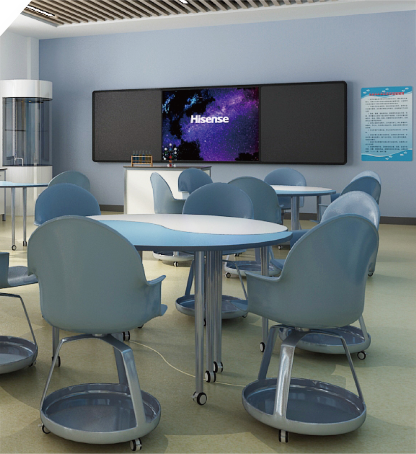 基于新课改新教材、未来教师核心素养要求,培养未来公民以跨学科知识创造性解决问题的能力,海芯打破传统教室单一呆板的功能界限,匹配各学科师生个性化教学需求,依据课程内容进行定制化设计, 提供场景化、高科技、沉浸式授课环境,分调动学生的学习积极性、主动性与创造性。